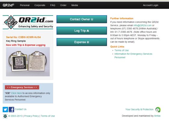 QR2id is a flexible system for identification and information management, as well as loss prevention and safety. When someone scans a QR2id Code, the target page by default includes a form to contact the owner of the QR2id Code, along with any other information the owner wishes to display.
