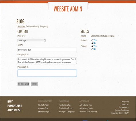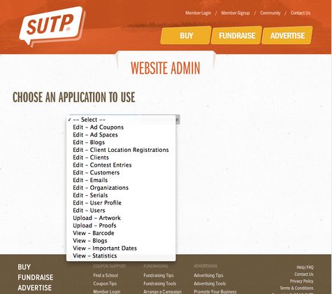 SUTP Administration appreciate the ability to access account information for Membership Rewards customers and coupon retrieval; Advertising Client contacts, locations, coupon offers and coupon redemption; and Fundraising Organization contacts and locations