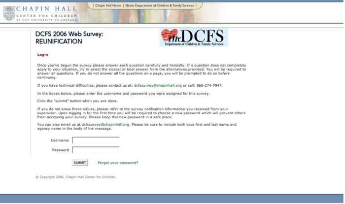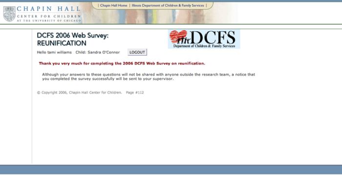 Chapin Hall Center for Children manages vast amounts of data for their research projects. One yearly project they conduct is a survey of over 1000 users. The survey's complexity is in its branching logic. Instead of making user walk through dozens of questions that are not relevant to them, Creative Computing helped them implement logic that fed users questions based on relevancy.
