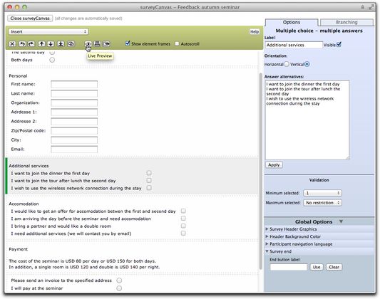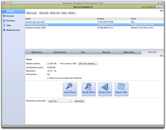 Beetrieve is a reinvention of the survey web service, made into an intuitive web app with an email-like interface. Probably the coolest coding happens in the completely AJAX based module for creating the questionnaire, where the JavaScript front end and the Lasso back end together manipulate and synchronize the XML structure that defines the questionnaire. This XML is then parsed by Lasso into HTML to show to a survey participant when the survey is live.